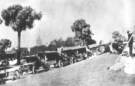 Quite by chance, I picked up a book which was a compilation by the survivors and rescuers of the “San Francisco Horror.” There I read how the only hospital that survived the first hours was the General Hospital, so other emergency facilities had to be improvised. And, in that Chicago library, my eyes fell upon a full-page photograph of one of these open--air morgues in Jefferson Square, where the soldiers, aided by volunteers, had removed the stricken out of the fire area. Covered caskets were placed in rows on the grass, including some infant-size ones.