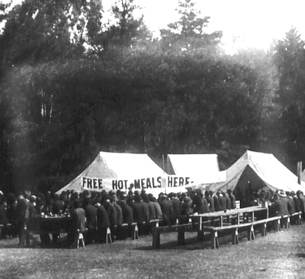 There were now five times the number of homeless in the almost-demolished city—fifty thousand alone in Golden Gate Park. Relief Centers were being established in Oakland, as well, but it was difficult to get the hordes across. Later that morning, plans to move out all the now-destitute got underway when the Santa Fe and Southern Pacific Railroads agreed to transport, free of charge, all who wished to leave, although it was not to be announced until a workable plan could be carried out.