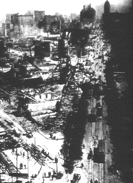 That night—the third night—San Francisco was a twenty-square-mile area of blackened desolation. Its wealthiest area was in ashes; sixty thousand buildings had become a thirty-foot rubble heap.