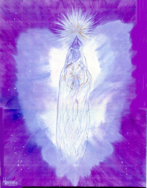 The Angel of Merging Upwards, A Blessed Angel Blending DNA patterns into new pathways... © 2005 by Gwen Mangum